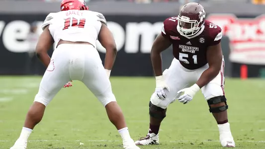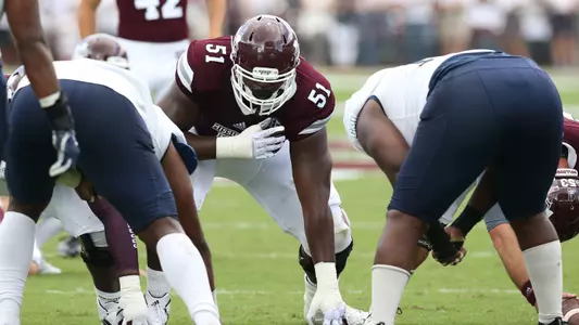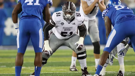 2017 REDSHIRT FRESHMAN SEASON: Started all 13 games at right tackle in his debut season … Paved the way for a dominant rushing offense that ranked second in the SEC, racking up 251.7 yards per game, which was also 11th nationally … Part of an offensive line that allowed the fewest sacks in the SEC and the fewest by an MSU team since 1988 (13) … Made his first career start in the season-opener vs. Charleston Southern (9/2).